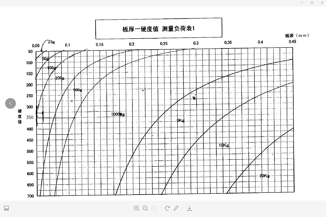 金屬蝕刻 板厚-硬度值 測量負荷表