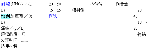 (二)金屬蝕刻化學蝕刻溶液配方及工藝條件